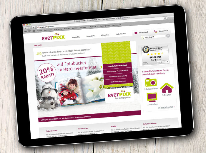 WGO produces individual photo books and photo calenders and wanted to position their products into the online-shop market with a new, female brand called “everpixx”.